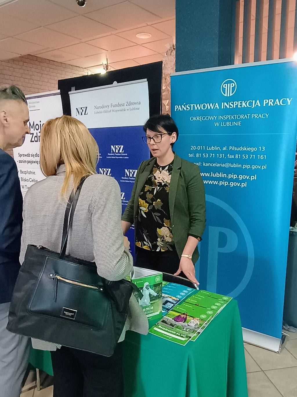 Podczas konferencji, w ramach działania informacyjno-edukacyjnego Państwowej Inspekcji Pracy „Ekspozycja pracowników na niebezpieczne i szkodliwe dla zdrowia czynniki chemiczne w środowisku pracy”, uczestnicy mieli okazję uzyskać bezpłatną poradę prawną w zakresie bezpiecznego stosowania substancji i mieszanin chemicznych podczas pracy, a także jakie są obowiązki pracodawcy w zakresie ochrony pracowników przed skutkami pracy w warunkach narażenia na działanie czynników rakotwórczych, mutagennych lub reprotoksycznych. Na stoisku zorganizowanym przez Okręgowy Inspektorat Pracy w Lublinie można było również zaopatrzyć się w broszury wydane nakładem Państwowej Inspekcji Pracy, a dotyczące powyższych zagadnień.