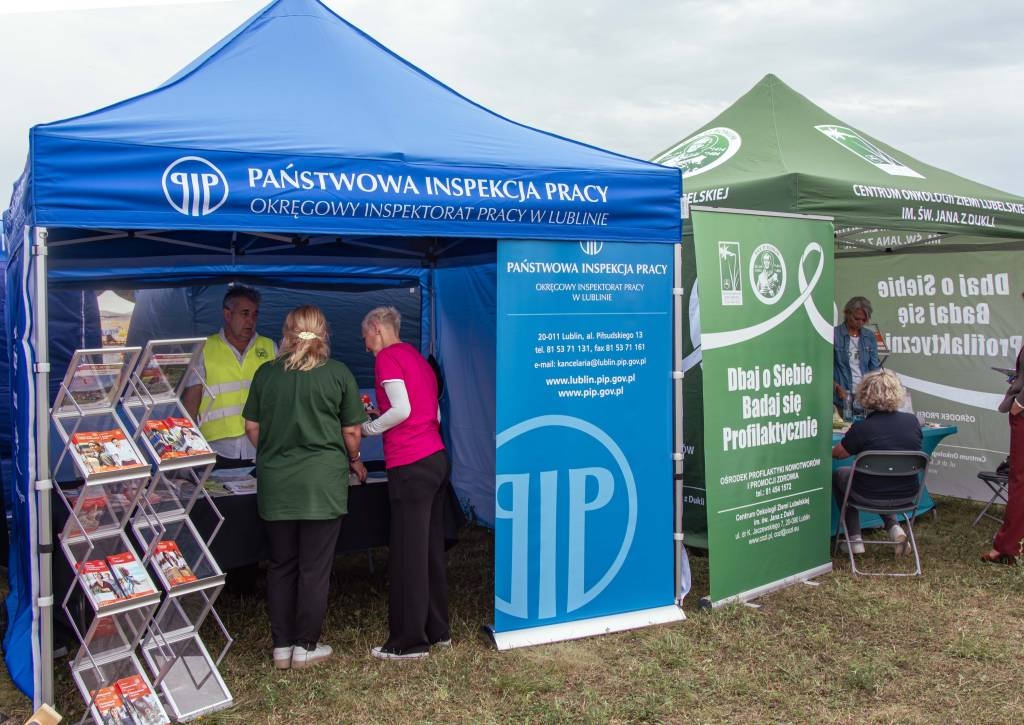 W miesiącach wakacyjnych, w ramach akcji letniej, Okręgowy Inspektorat Pracy w Lublinie prowadził podczas dożynek punkt informacyjny, którego celem było dotarcie do młodych osób rozpoczynających karierę zawodową. Na stoisku PIP udzielano bezpłatnych porad oraz dystrybuowano materiały edukacyjne. W praktyczny sposób wyjaśniano kluczowe przepisy prawa pracy — rodzaje umów, zasady czasu pracy i wynagradzania oraz wynikające z nich prawa i obowiązki. Szczególną uwagę poświęcono problemowi nielegalnego zatrudnienia („pracy na czarno”), a inspektor pracy na bieżąco odpowiadał na pytania i rozwiewał wątpliwości młodzieży oraz pracowników sezonowych.