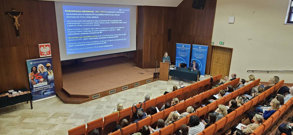 Zaproszeni prelegenci przedstawili kluczowe kwestie, dotyczące obowiązujących przepisów, które weszły w życie 1 czerwca 2025 tj.: ustawy z dnia 20 marca 2025 r. o warunkach dopuszczalności powierzania pracy cudzoziemcom na terytorium Rzeczpospolitej Polskiej oraz nowych przepisów wykonawczych, opublikowanych w dniach 26 oraz 27 listopada br., (początek obowiązywania przepisów - 1 grudnia 2025 r.), w zakresie legalności zatrudnienia cudzoziemców, a także zagrożeń związanych z nielegalnym rynkiem pracy.