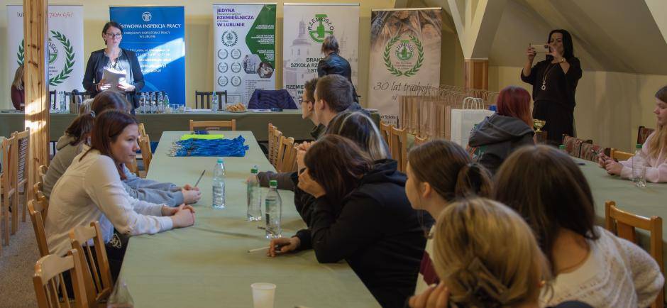 Celem konkursu jest popularyzowanie wiedzy z zakresu podstawowych przepisów prawnej ochrony pracy oraz zasad bezpieczeństwa i higieny pracy wśród uczniów zawodu w rzemiośle. Organizatorem etapu regionalnego w województwie lubelskim jest Izba Rzemiosła i Przedsiębiorczości w Lublinie oraz Państwowa Inspekcja Pracy Okręgowy Inspektorat Pracy w Lublinie, którą reprezentowali: starszy inspektor pracy – specjalista Krzysztof Sabarański, starszy inspektor pracy Karolina Wójtowicz oraz inspektor pracy Jagoda Strzelińska.
